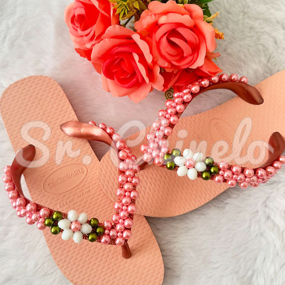 Um encanto de modelo! Com trama de pérolas delicadamente aplicada e flores que complementam o design, esse chinelo rosa é a escolha perfeita para quem ama detalhes femininos e elegantes. Ideal para criar um look romântico e sofisticado, ele se destaca pela harmonia entre as pérolas e as flores que dão um toque especial. Adquira os materiais necessários em nossa loja e comece a personalizar chinelos únicos para revenda. Surpreenda suas clientes com essa criação cheia de estilo e charme!