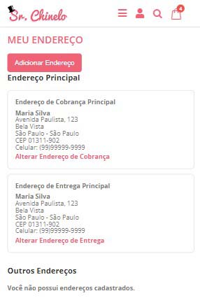 É possível cadastrar mais de um endereço, clicando no botão Adicionar Endereço.
