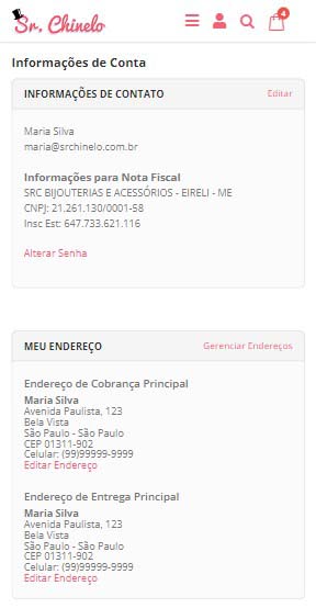 Ao realizar o login no site e acessar o menu Minha Conta, você terá acesso a todas as suas informações cadastradas, e caso necessário, você poderá alterá-las.