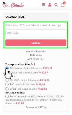 Na loja virtual Sr. Chinelo você pode escolher entre as seguintes opções de entrega: