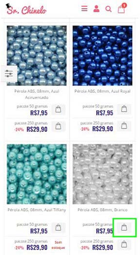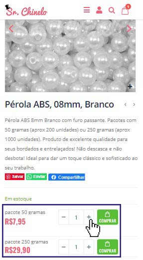• COMPRAR Para comprar, você pode clicar na SACOLINHA ao lado do preço do produto na página de categoria ou acessar a página do produto e clicar no botão COMPRAR.